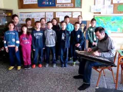 Valuable help for rehearsal and performing was our music teacher Thanasis Koulentianos. The traditional musical instrument he has is named Kanun (or Qanun) [see info in: http://en.wikipedia.org/wiki/Qanun_(instrument)]